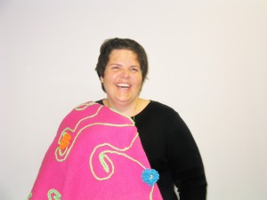 Here is a picture of Marci wearing my beautiful shawl she made.