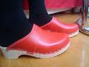 Not that that wasn’t all enough excitement for me there was a booth at the festival with wooden clogs. Do you remember those clogs? I think they used to be called Dr. Scholl or something or other. (See Darlene’s comments she thinks they were called Clarks.) These were the funkiest colours and I can’t wait to save and get a pair. I was just talking the other day to someone about how much I missed my wooden clogs. They said the same thing. I said I wish they still had them. Low and behold Jill shows up at the Cobourg Festival selling her wooden clogs. Her site is here but it doesn’t seem to be set up yet. Keep trying. (If you are interested and can’t get on the site I have her card just email me. ) Apparently she is importing them from Sweden. OO la la. I used to live in them. I had a blue leather pair and a brown suede pair. Other than losing the ‘tards here’s what they look like. I found this picture on the net for you.