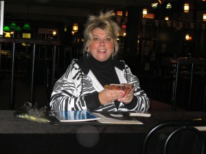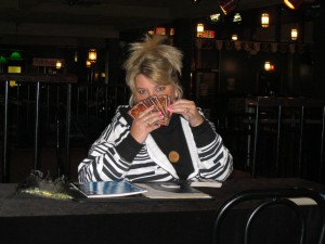 Here’s a picture of Carolyn doing her Tarot Readings. Check out the great orb in front of her. She just pulled out her tarot cards and it was there. For those of you who are saying it was the light or something here is the next picture right after.
