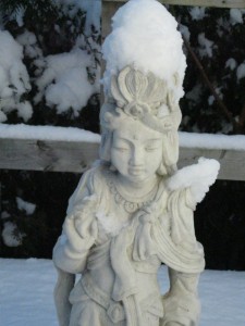 Speaking of new do’s check out Kwan Yin and Frances of Asissi’s do who reside outside my office at home!